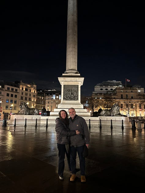 So, January 12th is both my birthday (52) and my wedding anniversary (22), and this year, with no kids left in our house, Chris and I decided to fly away to London, to visit dear friends who recently moved back there.